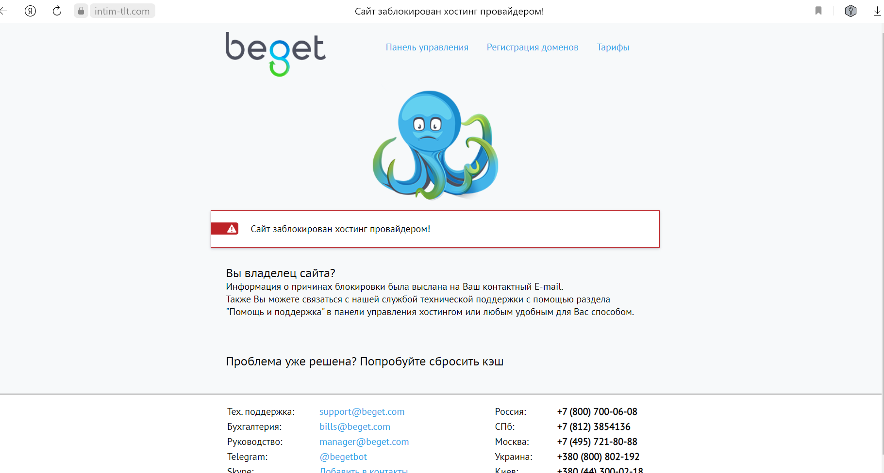У кого нибудь получается зайти на intim tlt? У меня выдает вот это. Судя по всему забанена вся сеть сайтов intim, в других городах отображается тоже самое.