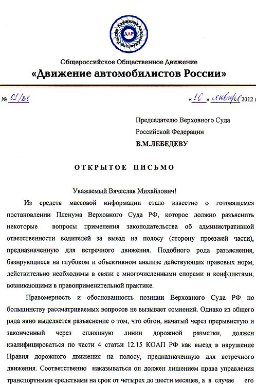 Обгон по встречной, начатый через прерывистую линию разметки, но завершенный с пересечением сплошной, следует квалифицировать по самой суровой для водителей статье Кодекса об административных правонарушениях (КоАП) — 12.14, часть 4 (выезд в нарушение правил на сторону дороги, предназначенную для встречного движения). Это нарушение наказывается лишением прав на срок до шести месяцев. Такое разъяснение содержится в подготовленном Верховным судом проекте дополнений к постановлению его же пленума от 2006 г., оно уточняет вопросы применения 12-й главы Особенной части КоАП, предусматривающей ответственность за нарушения правил дорожного движения.