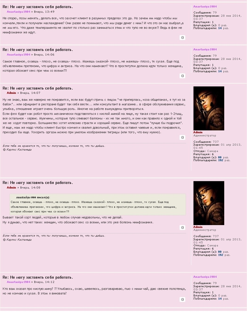 При том большинство из них выгорело уже в первые дни своего фейства. В принципе проституция не отличается от любой другой работы - есть профессионалы, а есть выгоревшие.
