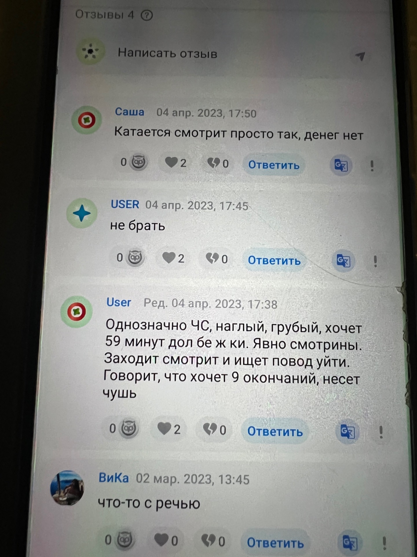 Ох друг, и таких 95%alexander1 писал(а): 2023-05-12 15:05 На ul-intim отзывы почистила она, но хоть тут оставлю отчет, и сберегу ваше время и деньги и она меньше заработает.
