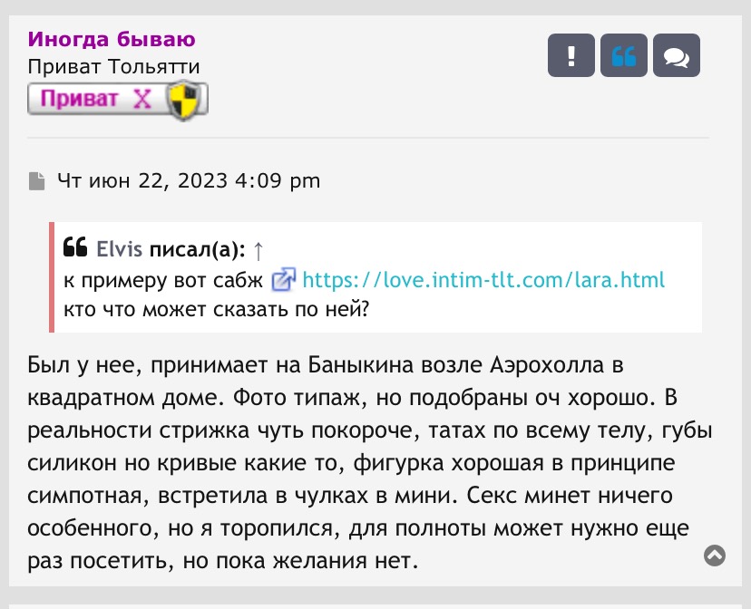 Был у нее.Жопа хорошая, а все остальное на троечку.Профессионально набивает отзывы себе в анкету с каждого посетителя как акула)