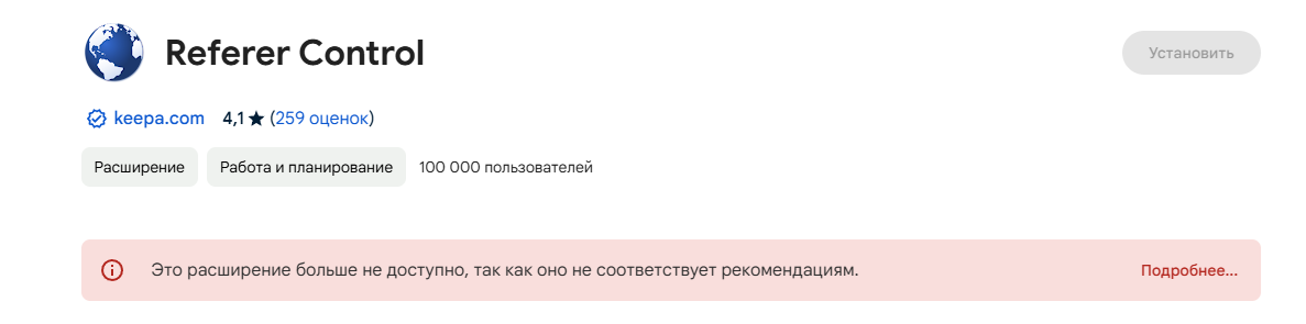 у меня все поставилось и заработало, был только варнинг, что это расширение может устареть и помереть. Видимо у тебя в настройках что-то стоит что мешает установить т.е. локальные траблы