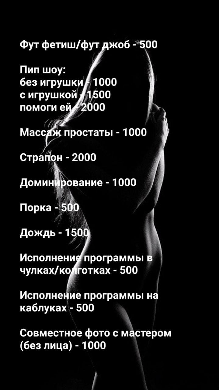 Также есть vip - 7.900 80 минут Максимально насыщенная эротически программа, в нее включено множество дополнений, которые можем обсудить лично по пожеланиям. Входит 1/2 окончания на выбор. Поцелуи яичек, ласки, поцелуи по телу, различные позы. Подробнее обсуждаем про встрече по пожеланиям
